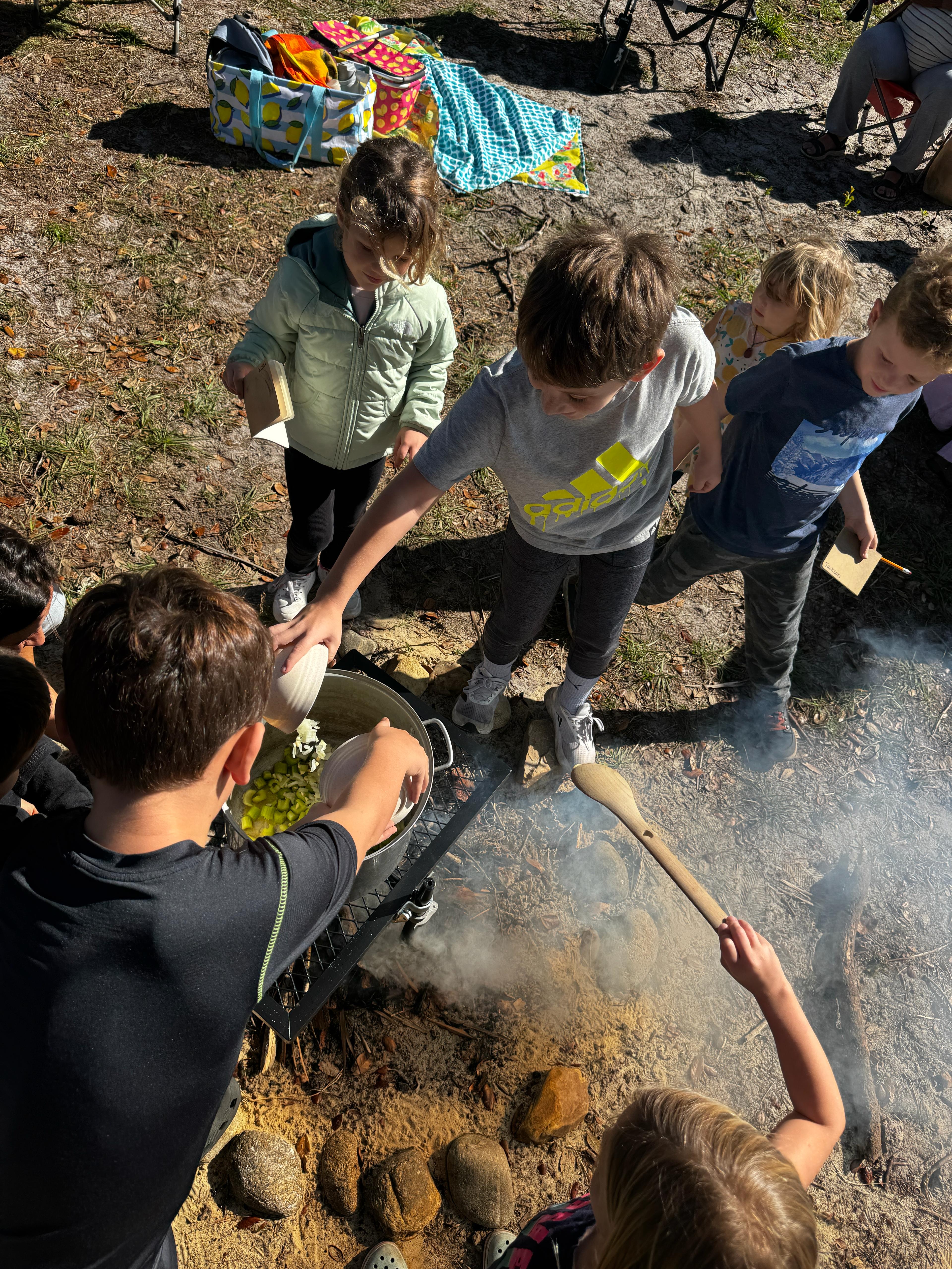 Our second Tuesday divinely landed on a truly cold Florida winter day, perfectly aligning with my lesson plan to read Stone Soup and cook together. As children chopped vegetables and added what they could to the pot, they witnessed how shared contributions become nourishment for all.
