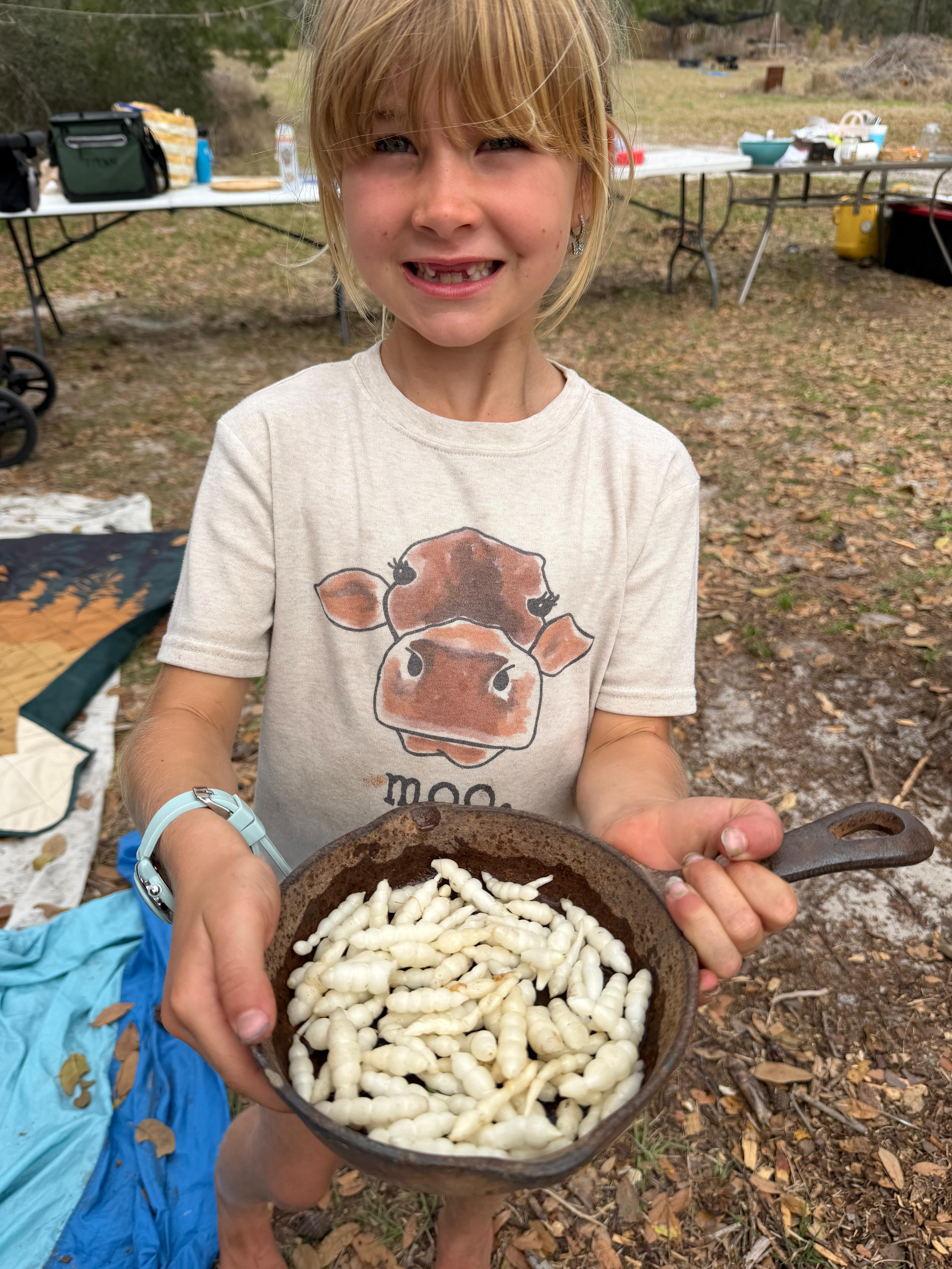 ^^Our group’s current obsession has been digging for Florida betony, which the kids have dubbed “rattlesnake tails.” Robin Greenfield introduced us to this crunchy, edible “weed,” whose small tubers can be pulled straight from the soil.