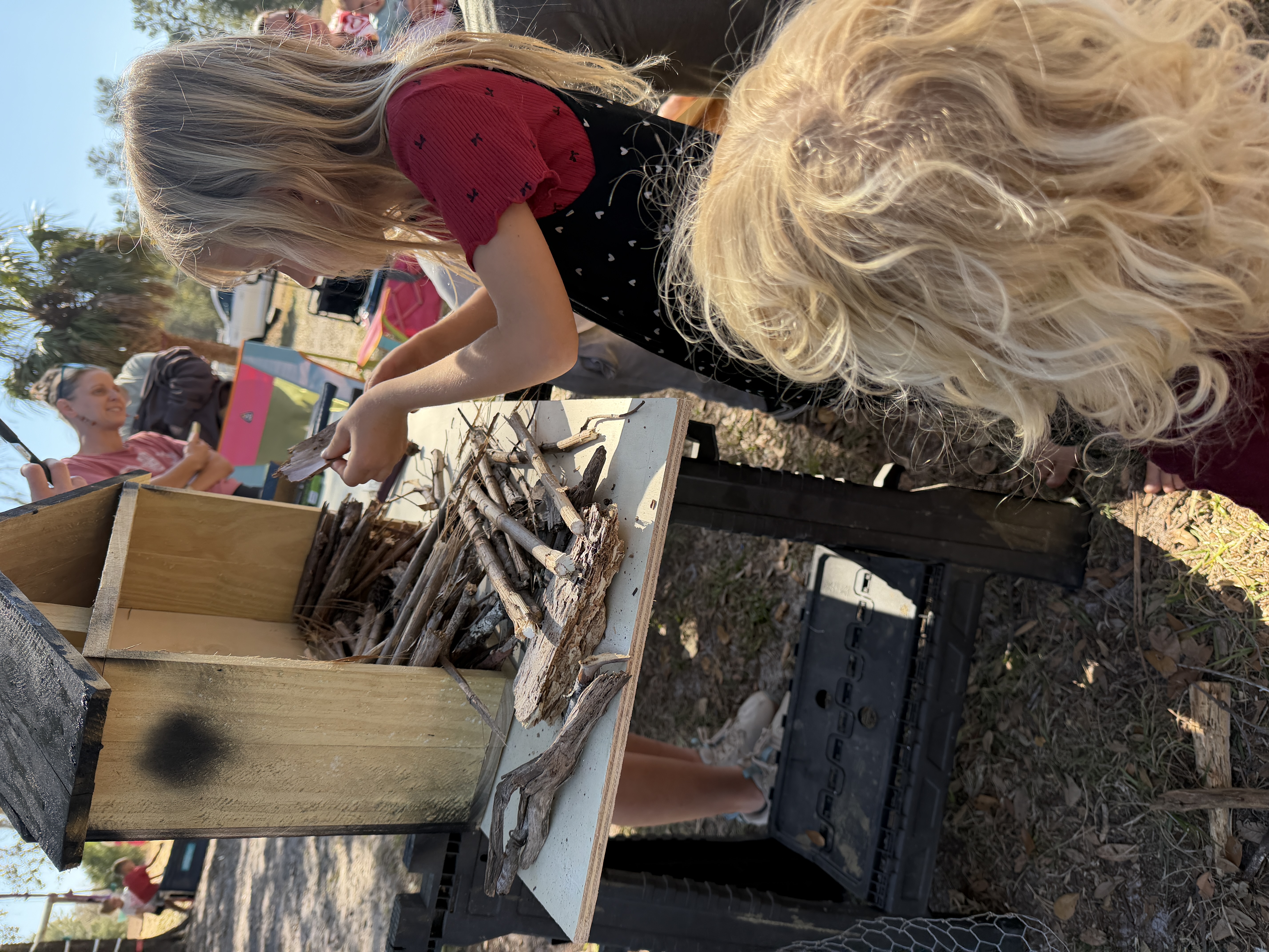 Week one, Sierra kicked things off with Earth. She shared about how all of the Elements are everywhere we look, including inside ourselves. We talked about where food comes from. And her husband who is a carpenter joined in and helped the kids build a bug hotel we’d continue to work on over the month-giving critters a cozy space for every element.