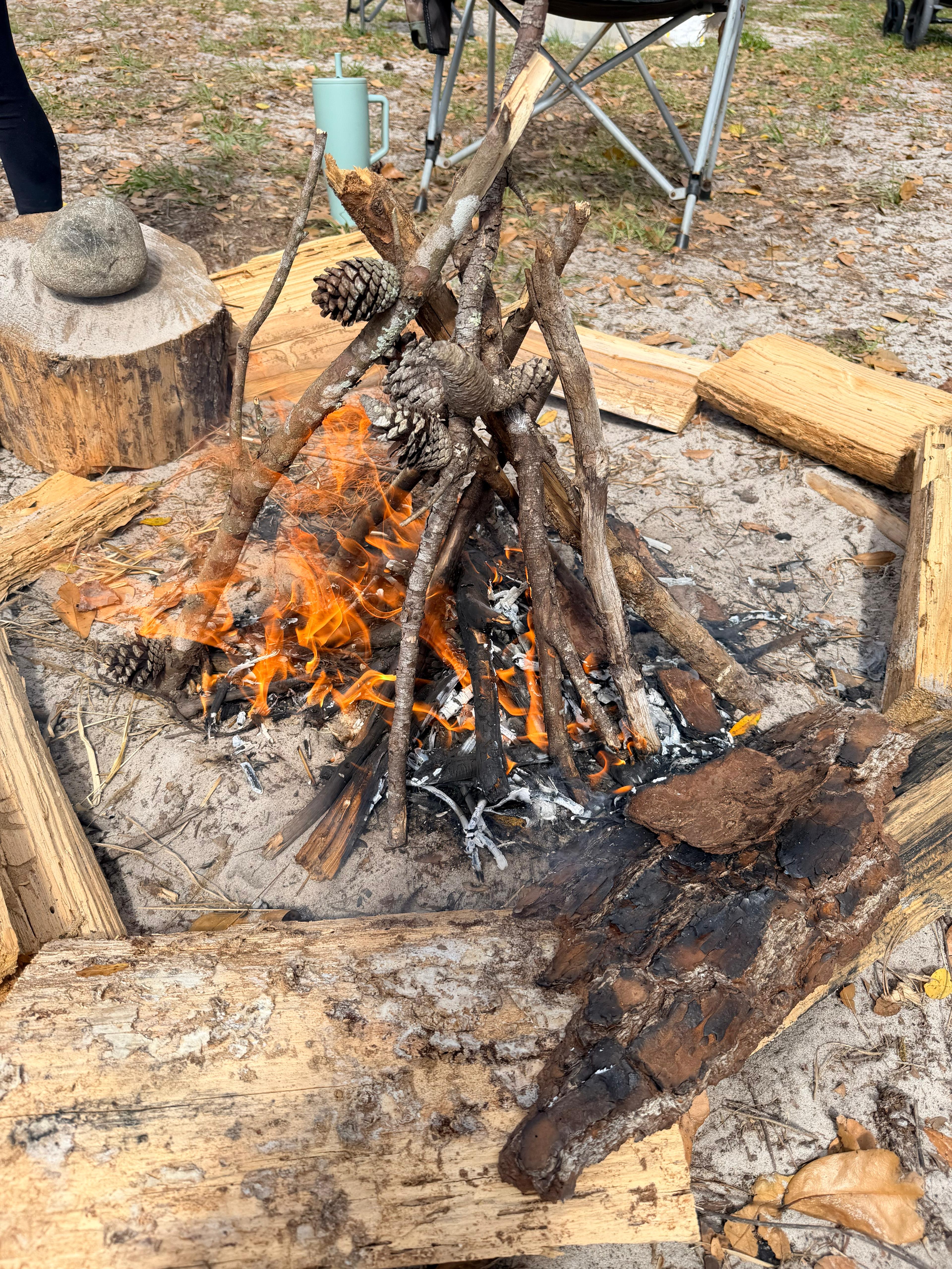 And then there was fire. Easily the highlight for our crew. With lots of preparation around safety and respect, they learned the foundations of fire building-how to gather kindling and tinder, how to structure a small fire, and how to use different tools and materials. The sheer excitement as the kids started to see smoke form using a magnifying glass and heat from the sun. There was something so captivating about watching their faces as sparks turned into small flames. Of course, we wrapped up by roasting hot dogs and marshmallows – a timeless use of fire. You could feel that familiar sense when a core memory is being made, as well as the subtle sense that an ancient memory was awakening, connecting us with ancestors who have been gathering around fire forever.