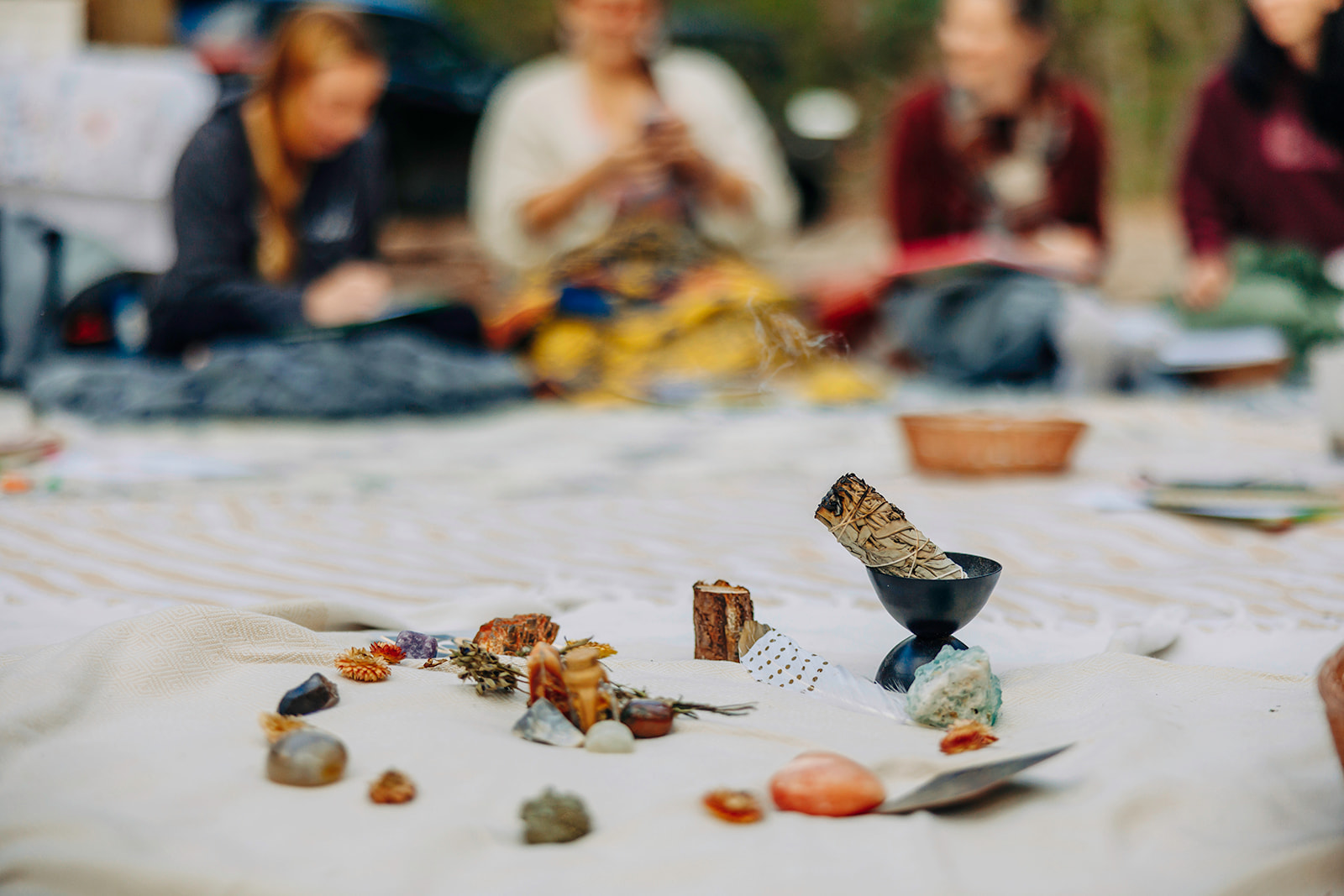 Before each circle, I follow my intuition to choose which crystals to place in the center, creating a quiet, intentional space. They don’t hold power themselves, but they help reveal what each of us might need to notice or focus on. Paired with the gentle smoke of sage or palo santo, the space feels alive with Spirit, calm, and ready for reflection.